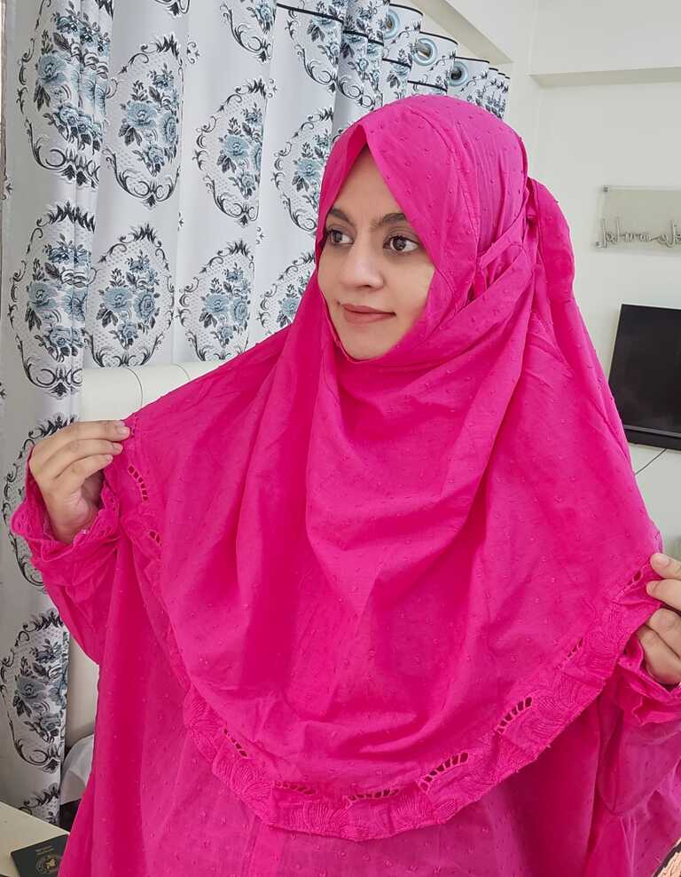 includes a built-in niqab, providing semi long coverage. It's soft & airy fabric making it ideal for daily prayers and or regular wear.