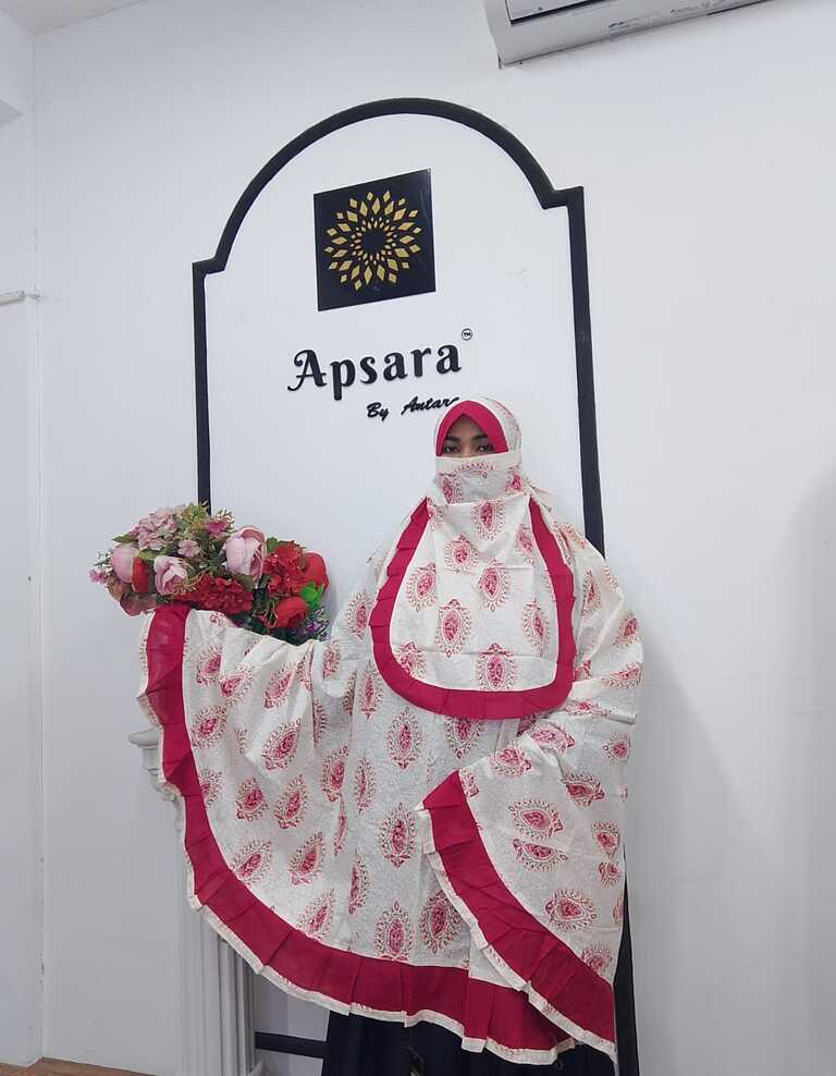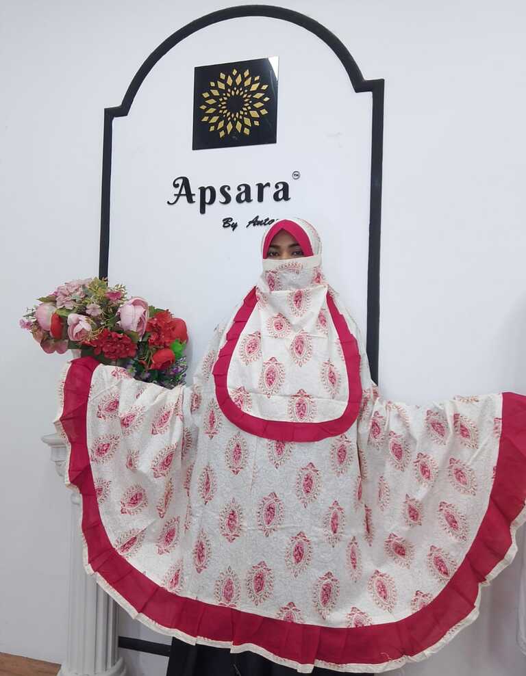 Frill salat hijab is the most popular and our signature item. Made of premium cotton voilelightweight Salat hijab offers exceptional comfort and breathability. The design provides semi long coverage. You can use both ways, with and without the niqab. It's soft & airy fabric making it ideal for daily prayers and or regular wear. Perfect for those who prefer a simpleelegant, and hassle-free prayer outfit.
