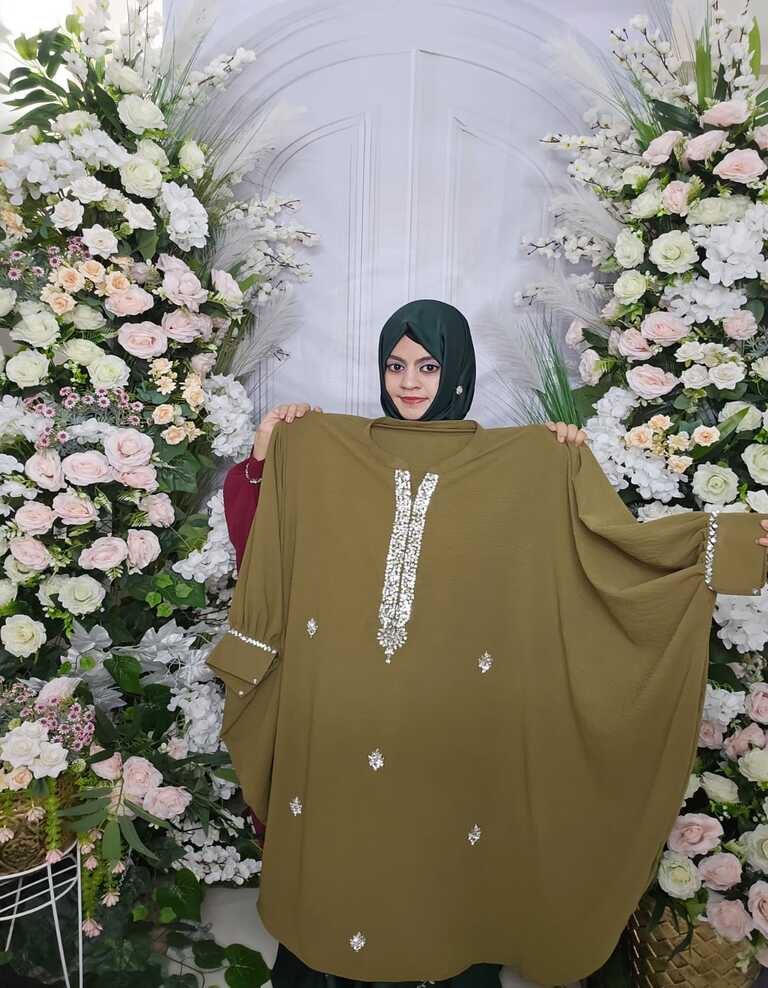 This elegant women’s short kaftan is imported product, designed for comfort, modesty, and daily wear. Perfect for Wedding, Special Occasion.