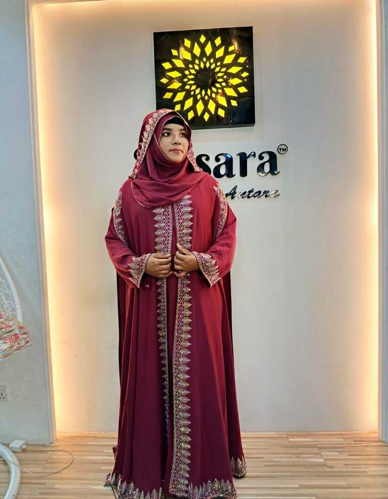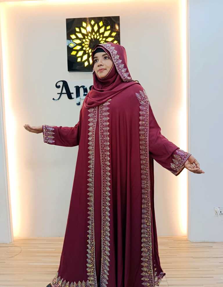 This elegant women’s Abaya is made from cherry fabric, designed for comfort, modesty, and daily wear. Perfect for Wedding, Special Occasion.