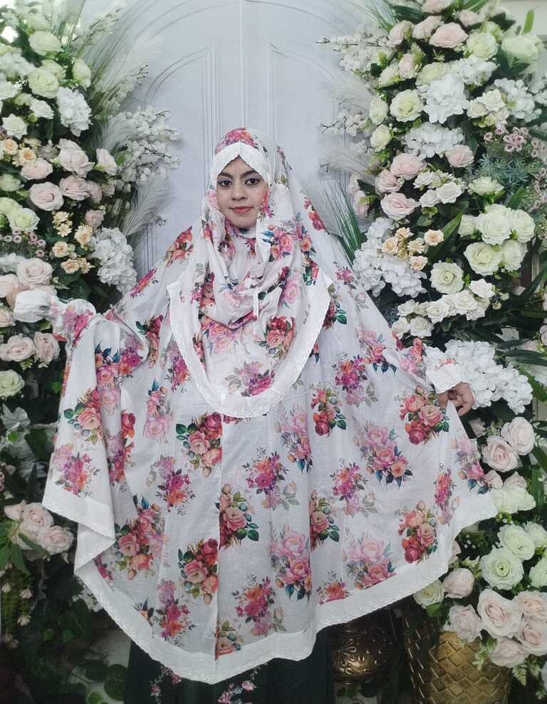 প্রিমিয়াম সুতির ভয়েল দিয়ে তৈরি, হালকা ওজনের সালাত খিমার ব্যতিক্রমী আরাম এবং শ্বাস-প্রশ্বাসের সুবিধা প্রদান করে। এই হিজাবটি সেমি কভারেজ প্রদান করে। নিকাব এবং কাপড়ের নীচের অংশটি সুন্দরভাবে লেইস করা হয়েছে। এটি নরম এবং বাতাসযুক্ত ফ্যাব্রিক যা এটিকে প্রতিদিনের নামাজ এবং নিয়মিত পরিধানের জন্য আদর্শ করে তোলে। যারা একটি সহজ, মার্জিত এবং ঝামেলামুক্ত নামাজের পোশাক পছন্দ করেন তাদের জন্য উপযুক্ত।