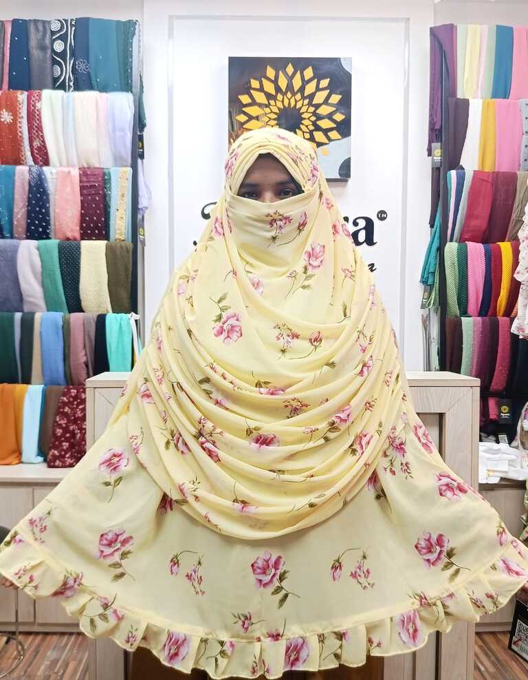 একটি প্রিমিয়াম মানের নিকাবসহ হিজাব, যা আমাদের নিজস্ব ফ্যাক্টরিতে উন্নত মান নিয়ন্ত্রণের মাধ্যমে তৈরি।এটি সফ্ট জর্জেট ম্যাটেরিয়াল দিয়ে তৈরি হওয়ায় হালকা, আরামদায়ক এবং দীর্ঘ সময় পরার জন্য উপযোগী। এই হিজাবের নিকাবে এবং হিজাবের নিচের অংশে রয়েছে সুন্দর কুচি ডিজাইন, যা পরিধানে দেয় স্মার্ট ও এলিগ্যান্ট লুক। নিকাব সংযুক্ত থাকায় আলাদা করে নিকাব ব্যবহারের প্রয়োজন নেই। যেকোনো ধরনের ড্রেস—ক্যাজুয়াল, ফরমাল বা ডেইলি ওয়্যার—এর সাথে সহজেই মানিয়ে যায়।