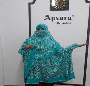 comfort and breathability. The design includes a built-in niqab. This hijab provides semi long coverage. The niqab and the bottom of the cloth are