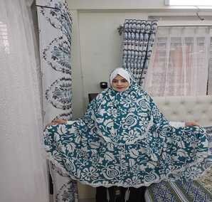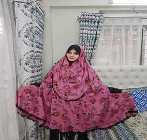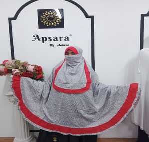 comfort and breathability. The design includes a built-in niqab. This hijab provides semi long coverage. The niqab and the bottom of the cloth are